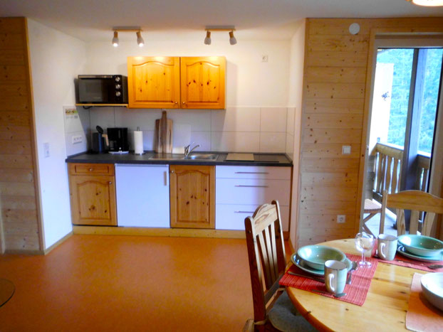 Küche mit Balkonfenster